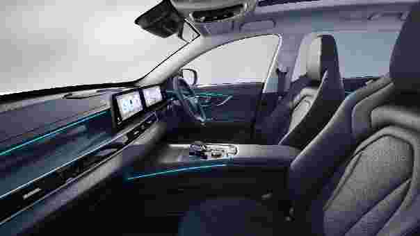 Inside, the vehicle offers a refined and intuitive experience, featuring a 24.6-inch dual curved display powered by the Snapdragon 8155 chipset, an 8-speaker Sony audio system, ambient lighting, and a panoramic sunroof.